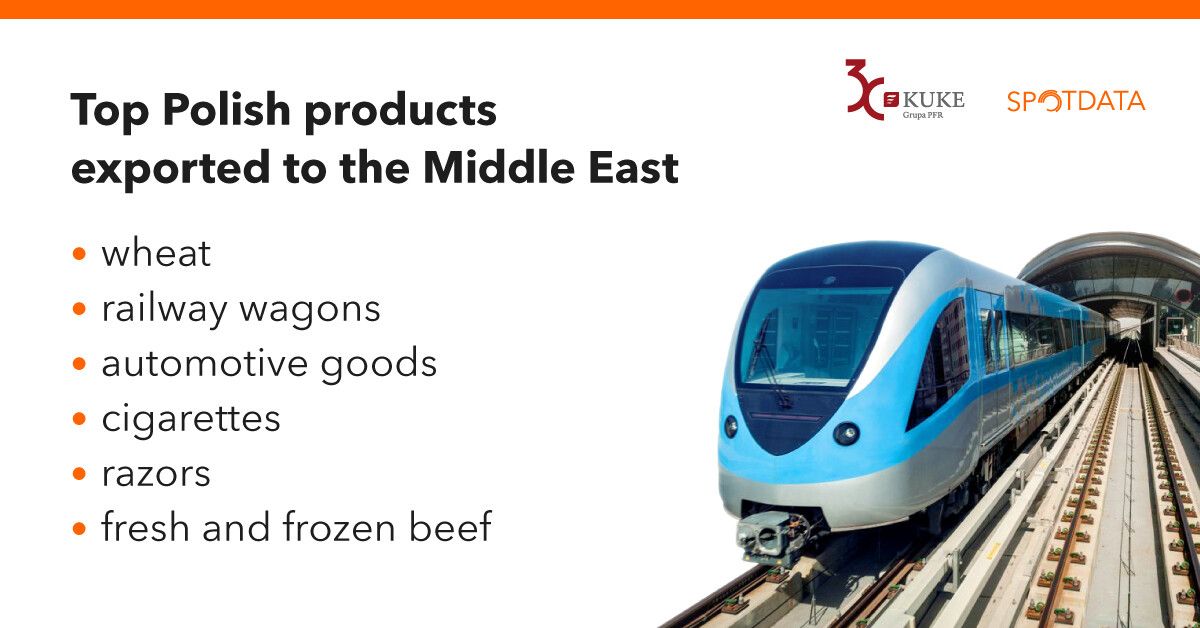 In 2020, wheat had the largest share in exports of goods to the Middle East (approx. USD 360 million), which was sold by Polish companies almost exclusively to Saudi Arabia. Although wheat had a significant, increasing share in the exports of goods to countries in the region over the past decade, it constituted Poland’s export hit only in 2020. A year earlier, in 2019, railway wagons (approx. USD 250 million) had the largest share in exports from Poland to Middle Eastern countries, most of which were sold by Polish enterprises exclusively to the United Arab Emirates as part of the investments in the development of their track-based modes of transport. There was a similar situation in 2018 when railway wagons were in fourth position on the list of the highest in value export commodities. Back then, their main buyer was Saudi Arabia which was also modernizing its rail system.
